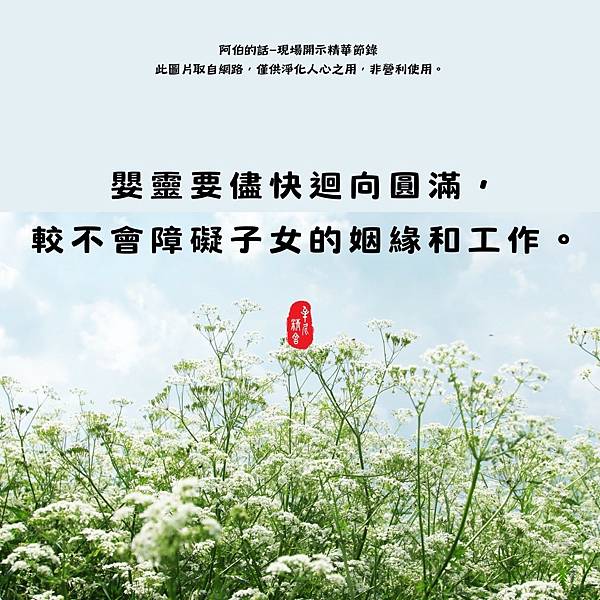 在無法補福德資糧的情況下,可參與渡眾、發書、分享,讓更多人了解「因果債,功德還」,這也是在積累善功。解決問題不是靠拜拜、算命或請人處理,而是靠自己付出努力。